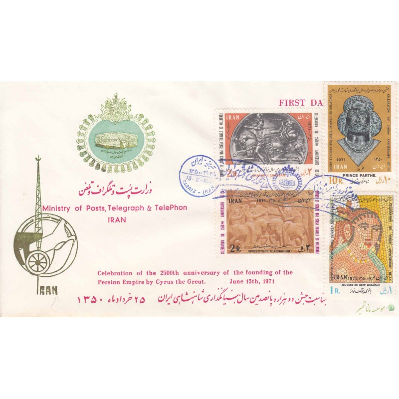 پاکت مهر روز بمناسبت جشن دو هزار و پانصد مین سال بنیانگذاری شاهنشاهی ایران